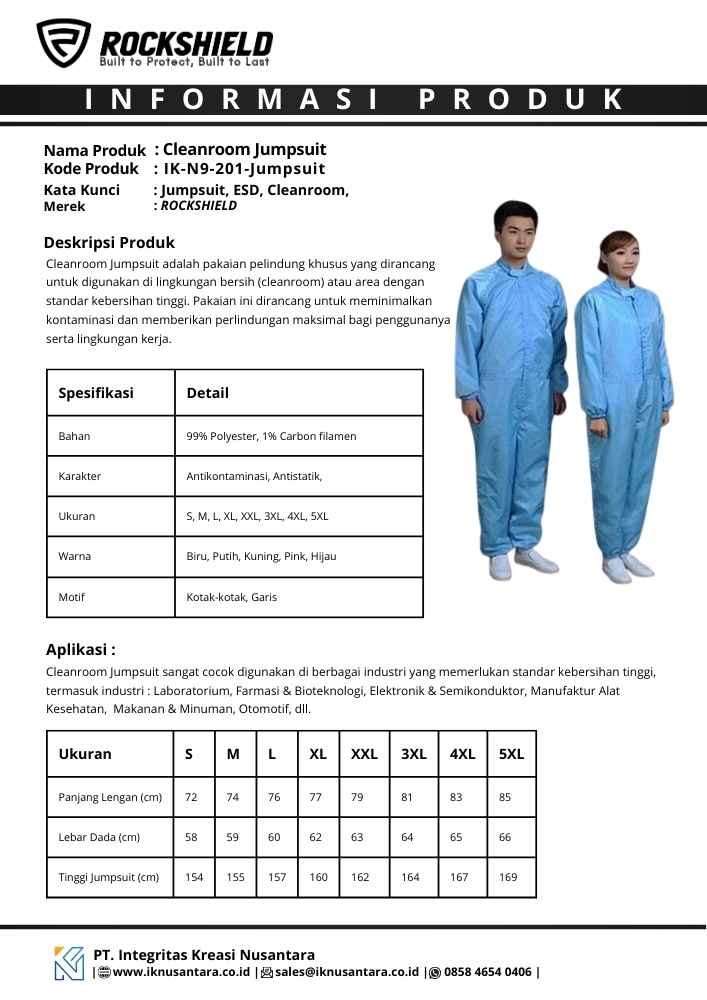 Dalam lingkungan produksi yang sensitif terhadap partikel dan listrik statis, pakaian pelindung bukan sekadar seragam, melainkan barisan pertahanan utama. Rockshield Cleanroom Jumpsuit dirancang khusus untuk memenuhi standar kebersihan tertinggi di area cleanroom. Dengan desain terintegrasi, produk ini meminimalkan celah bagi partikel tubuh untuk mencemari proses produksi..