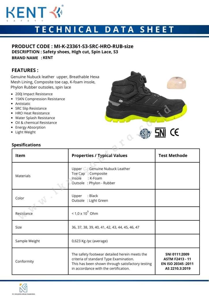 Ketangguhan Tiada Tanding di Medan Berat. Menghadapi medan kerja yang basah, tidak rata, atau berbatu? Kent Manawoka 23361 S3 adalah partner yang Anda butuhkan. Didesain kokoh namun tetap mengadopsi teknologi modern Swift-Lace untuk kemudahan penggunaan.